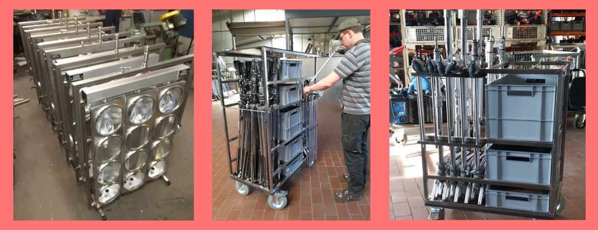 Wir fertigen Beleuchtungsanlagen wie die legendären Dino-Lights oder unsere Wagen für den sicheren und bequemen Transport der Filmausrüstung. Sonderwünsche bei Filmtechnik können berücksichtigt werden!